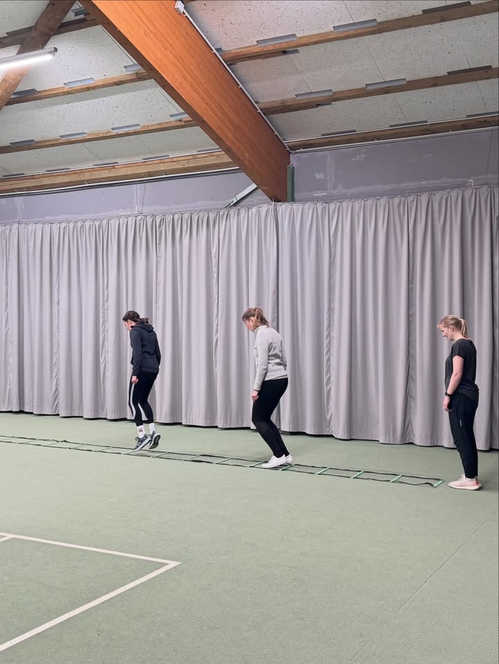 Maike hat uns in die Tennishalle eingeladen, wo einige von uns zum allerersten Mal den Schläger schwangen. Los ging es natürlich mit einem Aufwärmprogramm, gefolgt von Ballübungen, bis wir zur Vor- und Rückhand gekommen sind.